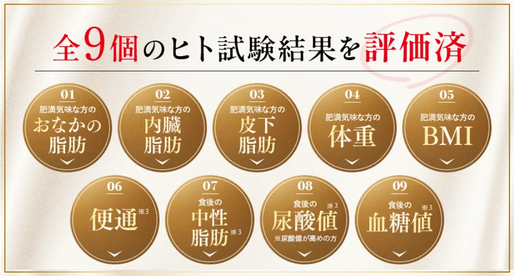 これ一つで、ウエスト周囲径・中性脂肪・体脂肪・体重の減少をまとめてサポート*1してくれて、周囲が羨ましがる理想の体型を目指せます!