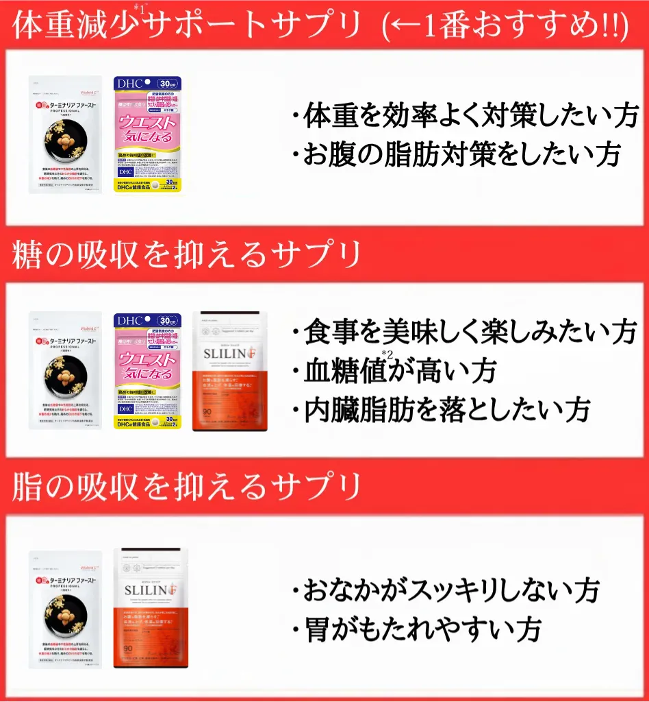 最後になりますが、今回紹介した本当におすすめの脂肪対策サプリをまとめておきます。